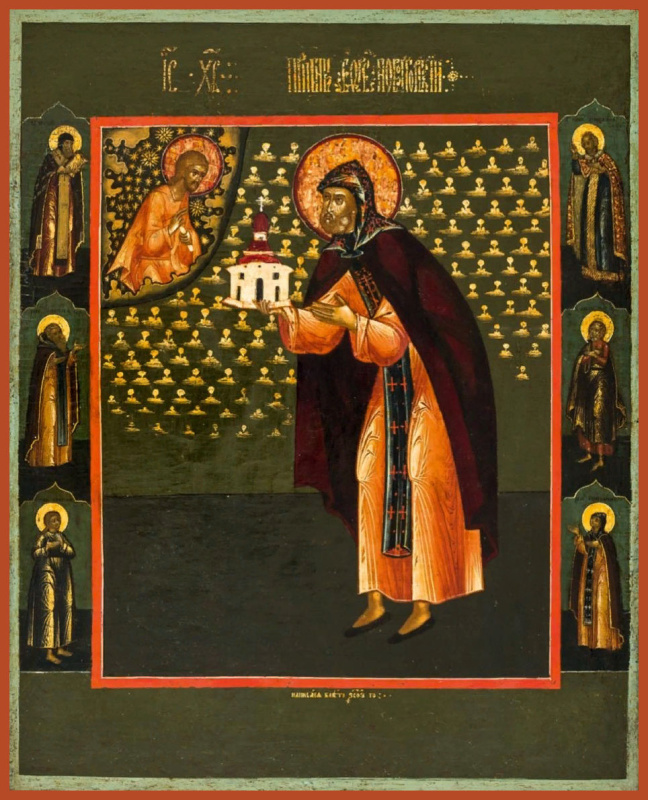 Преподобный Ефрем Новоторжский, основатель Борисоглебского монастыря в городе Торжке, был родом из Венгрии. Вместе со своими братьями, святым Моисеем Угрином (память 26 июля) и святым Георгием, он покинул родину, возможно, по причине преследования православных. Придя на Русь, братья поступили на службу к Ростовскому князю святому Борису, сыну равноапостольного великого князя Владимира. В 1015 году на реке Альте вместе со святым князем Борисом погиб и брат Ефрема Георгий. Убийцы отрезали ему голову, чтобы снять золотую гривну, которую он носил на шее. Моисею удалось спастись бегством, и он поступил в число монахов Киево-Печерского монастыря. Ефрем, находившийся в это время, очевидно, в Ростове, прибыв на место убийства, нашел голову брата и взял ее с собой. Оставив службу при княжеском дворе, преподобный Ефрем удалился на реку Тверцу с тем, чтобы там вести уединенную иноческую жизнь. После того, как возле него поселилось несколько монашествующих, он в 1038 году построил монастырь в честь святых князей страстотерпцев Бориса и Глеба. Братия избрали его своим настоятелем. Близ монастыря, расположенного неподалеку от торгового пути к Новгороду, был устроен странноприимный дом, где бесплатно содержались бедные и странники. Скончался преподобный Ефрем в глубокой старости, его тело было погребено в устроенном им монастыре, а в гроб, согласно его завещанию, была положена голова его брата, святого Георгия. Мощи преподобного Ефрема были обретены в 1572 году.