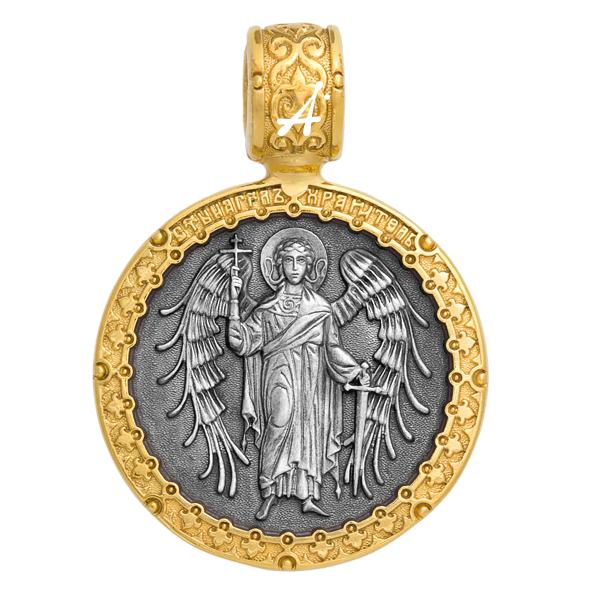 На лицевой стороне образка изображен Ангел Хранитель. В правой руке он держит крест — знак послушания Христу и следования Его заповедям. В левой сжимает меч: им он отражает нападения бесов, пытающихся уловить человеческую душу.