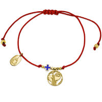Описание - Браслет «крестик и агнец» на красной веревочке серебро/золото