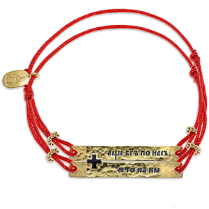 Это браслет, состоящий из двух со словами: "Аще Бог по нас кто на ны" (Если с нами Бог, кто против нас?). Самые жизнеутверждающие слава для христиан, если их повторять,то они выведут из любой депрессии