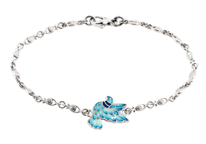 Нежный, тонкий, изящный браслет из серебра с христианским символом «Голубка» расписан вручную горячей эмалью.