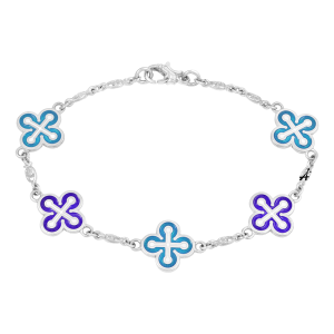 Нежный, тонкий, изящный браслет из серебра с христианским символом «Крестная сила» из пяти равноконечных крестов расписан вручную горячей эмалью.