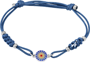 Браслет выпускается с шнурками двух цветов — синего и красного, в одном размере: подвижные узлы позволяют легко надевать браслет и регулировать размер по руке.