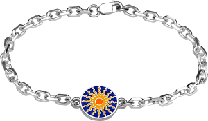 Нежный, тонкий, изящный браслет из серебра с христианским символом «Солнце» расписан вручную горячей эмалью.