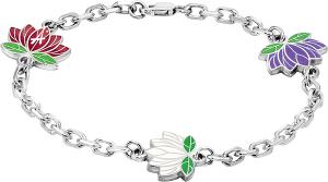 Нежный, тонкий, изящный браслет из серебра с христианским символом «Три лилии» расписан вручную горячей эмалью. Три лилии — это символы Чистоты, Красоты, Святости.