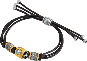 На браслет также помещены серебряные бусины с христианскими символами. Это две бусины с образом Процветшего Креста — древнейшего и очень почитаемого символа Креста Господня, Древа Жизни, процветающего виноградной лозой. Это символ вечной жизни, дарованной Господом. Еще одна бусина украшена русским традиционным плетеным орнаментом, символизирующим единство и взаимосвязь мира горнего и дольнего.