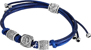 Именной браслет выпускается со шнурами нескольких цветов: черным, серебристым, синим и белым. Центральную бусину со святой покровительницей можно носить ликом к руке для сокровенной молитвы — и тогда браслет будет выглядеть как красивое и стильное украшение.