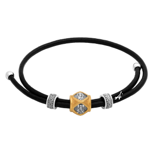 На тонком шнуре из телячьей кожи помещена бусина с изображением святых целителей и чудотворцев. Это великие святые, которым Господь даровал благодатную силу исцелять душу и тело людей от самых разных болезней. В христианстве их называют «безмездными врачами», потому что помощь людям они оказывали бесплатно. Таких святых православная церковь знает много. На бусину мы поместили образы четырех из них, больше других у нас чтимых. Это вмч. Пантелеимон Целитель, свт. Спиридон Тримифунтский, свт. Лука Крымский и блж. Матрона Московская.