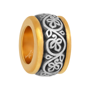 Небольшая тоненькая бусина-разделитель покрыта изящным растительным орнаментом. Это стебель вьюнка — растения, которое традиционно использовалось в искусстве орнаментики Византии и Древней Руси. Стебель вьюна, стремясь к солнцу, прорастает все выше, прикрепляясь к стенам домов, крепким стволам деревьев. В символическом сознании древних это растение как бы показывало пример всем верующим, которые, стремясь к Богу, должны тоже прилепляться к твердому и нерушимому телу Церкви Христовой.