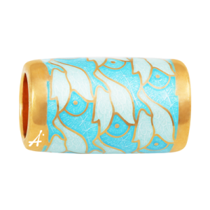 Крупная продолговатая бусина украшена красивым эмалевым орнаментом из рыб и птиц, которые в христианской культуре символизируют последователей Христа. Рыба с древности является символом Иисуса Христа: слово «Ихтис» (рыба) в греческом языке совпадает с инициалами имени Иисуса Христа. Поэтому первые христиане часто изображали рыб в тех местах, где молились. Рыба стала условным знаком всех христиан, и во всем мире эта традиция сохраняется до сих пор.