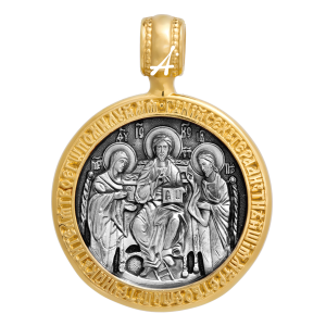 На образке изображены Пресвятая Богородица и Иоанн Предтеча, Креститель Господень. Склонившись, они обратились к сидящему на престоле Иисусу Христу и протянули к Нему руки в просительном жесте. Это одна из самых распространенных иконографий в православии. Она называется «Деисус», то есть «моление». Помещенный на образок Деисус — это образ молитвы Богоматери и Иоанна Крестителя за человека, который его носит.