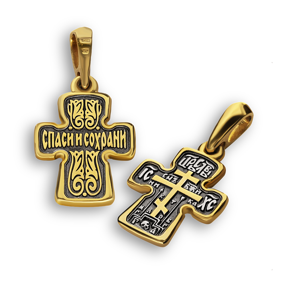 На лицевой стороне изображение восьмиконечного Голгофского креста с надписью» Иисус Христос – Сыне Божий». Этот крест – образ Креста Христова. На оборотной стороне обращение к Богу: «Спаси и сохрани».