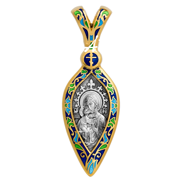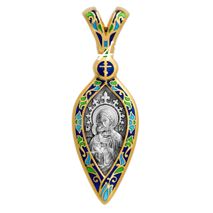Образок посвящен Феодоровской иконе Пресвятой Богородицы, хранящейся в Костроме. Это величайшая святыня Русской земли, по преданию, самая древняя из сохранившихся чудотворных икон. В «Повести и взыскании о граде сокровенном Китеже», написанной в XIII веке, говорится, что икона эта стояла в Городецкой часовне на берегу Волги уже в XI веке. После уничтожения Городца войсками Батыя в 1238 году икона исчезла и через год, 29 (16) августа, явилась в лесу вблизи Костромы. Ее нашел на дереве во время охоты костромской князь Василий. Князь хотел взять икону в руки, но та ему «не далась». Тогда в лес с крестным ходом направились костромские священники и торжественно перенесли образ в город. Жители Костромы вспомнили, что накануне видели, как икону носил по городу воин в доспехах, похожий на вмч. Феодора Стратилата. Поэтому вновь обретенную святыню поставили в костромском храме его имени, и, видимо, с тех пор икона получила название Феодоровской.