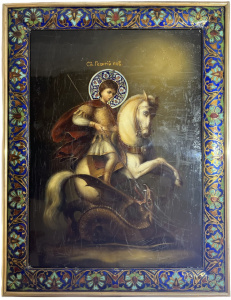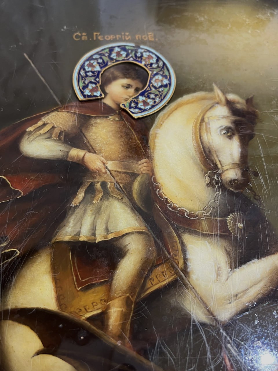 19 век. Размер иконы 30*40 см. Серебро, эмаль, написана на цинке