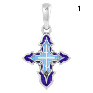 В Православной Церкви всегда существовали нательные кресты как с изображением Господа, так и без него. Сам крест, как орудие нашего Спасения, с апостольских времен почитается главным священным символом христианства. В Православной Церкви наиболее почитаемым является восьмиконечный крест, который изображен здесь на лицевой стороне. Крест установлен на схематично изображенное возвышение, которое символизирует гору Голгофу — место казни Христа. В основании Крестарасположен череп. По христианскому преданию, Господь был распят на месте могилы Адама. Кровь с Креста стекала на череп первого человека, словно омывая его от греха.