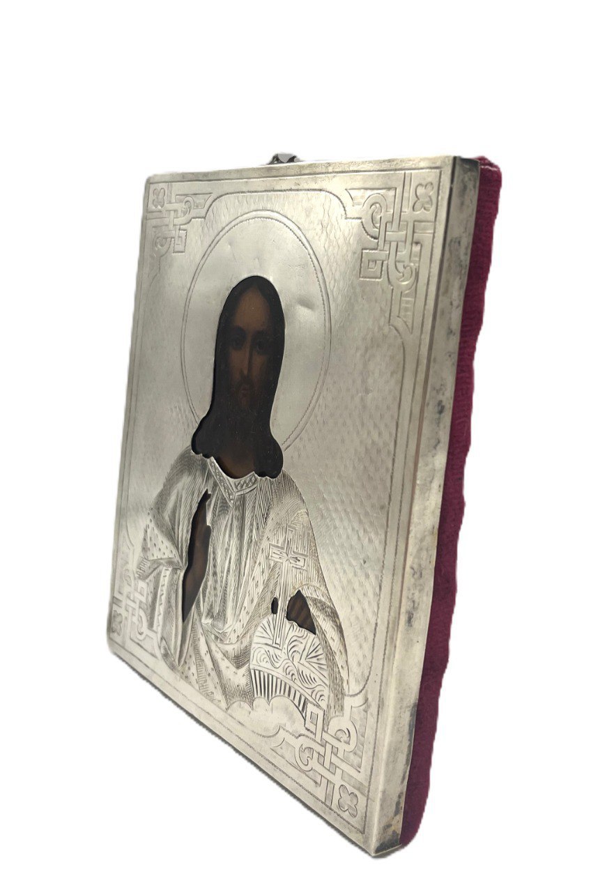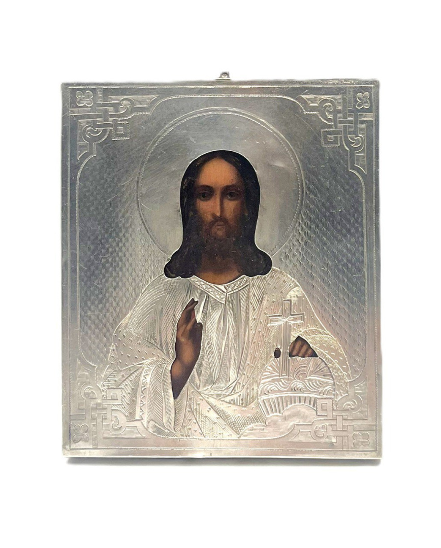 19 век. Размер иконы 11*13 см. Липа, левкас, темпера, золото. Оклад серебро