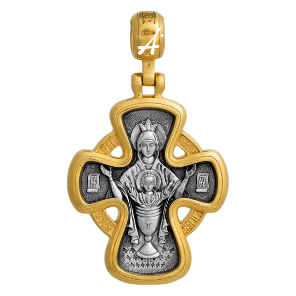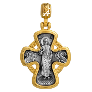 Нательный крест с образами Господа Вседержителя и предстоящими Ему святыми Моисеем Муриным и мучеником Вонифатием на лицевой стороне и иконой Божией Матери «Неупиваемая Чаша» на обороте предназначен для особой помощи и охранения людей, страдающих от алкогольной, наркотической, игровой и других зависимостей.