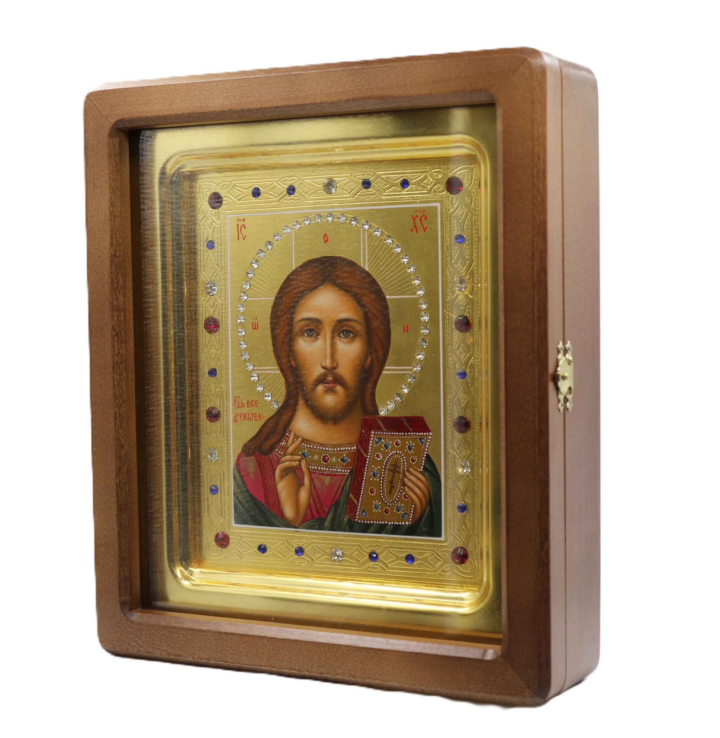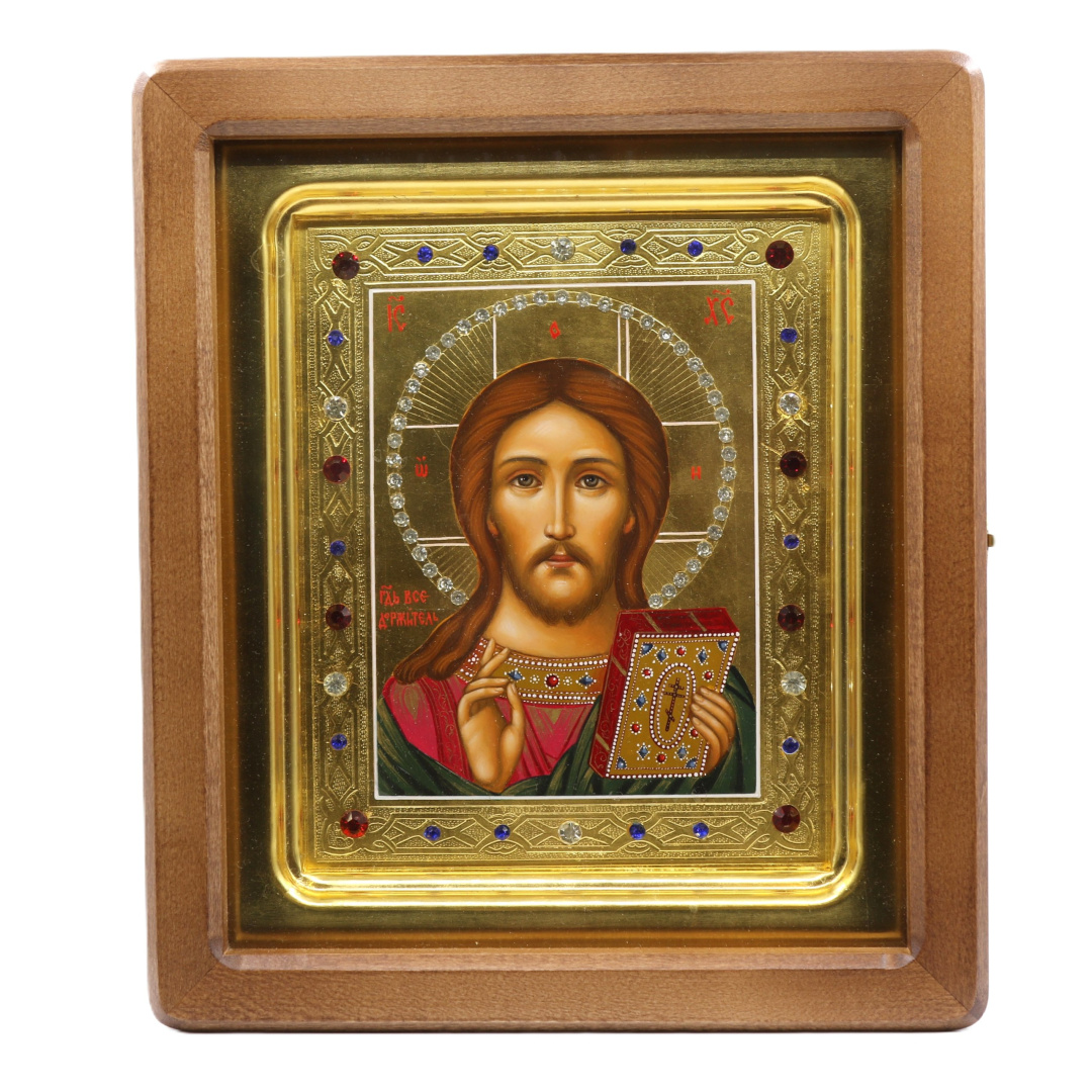 Ручная работа. Размер иконы 17*21 см. Липа, золото, киот. Ювелирные стразы