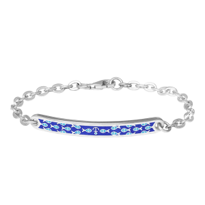 Тонкий браслет из коллекции «Молитва на запястье» украшен с одной стороны символическим орнаментом из рыбок, с другой на нем написана Иисусова молитва: «Господи Иисусе Христе, помилуй мя».
