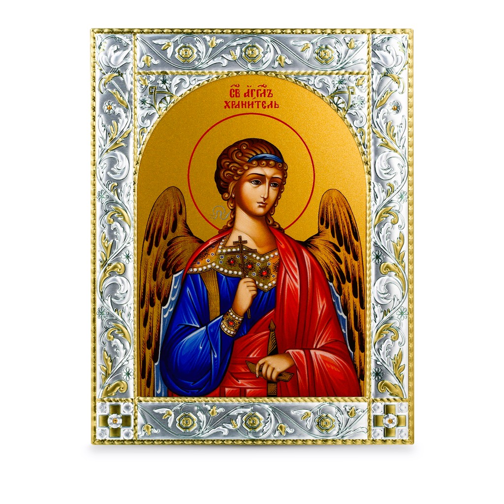 Размер иконы 140*180 мм. Рамка выполнена из сублимационного алюминия, покрытого посеребрёнными красками