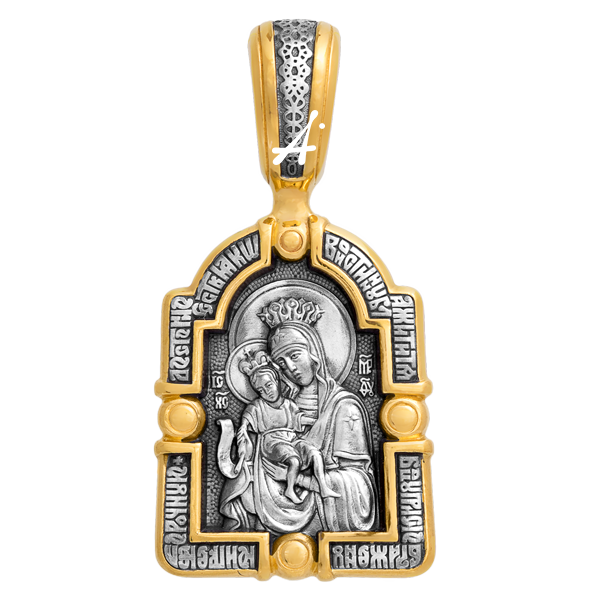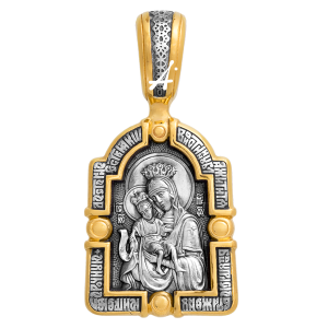 В афонских традициях богато орнаментированный образок с одной стороны изображает древнюю икону Богородицы «Милующая», с другой — Архангела Гавриила, который первым воспел перед этой иконой одно из самых главных, часто употребляемых и почитаемых богородичных песнопений Православной Церкви: