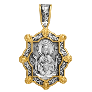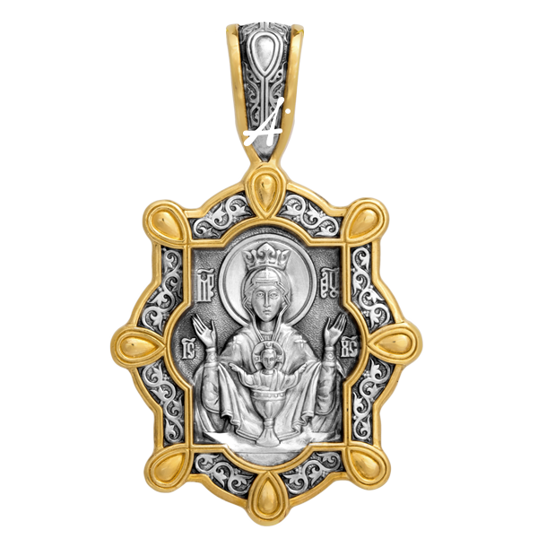 На лицевой стороне образка изображена сама почитаемая святыня, на обороте — орнамент в виде виноградной лозы, который символизирует Христа Спасителя и вино Евхаристии, вокруг него молитва Пресвятой Богородице: «Радуйся Агнице, родшая Агнца, вземляющего грехи мира, радуйся Чаше, черплющая нам радость от источника безсмертия».