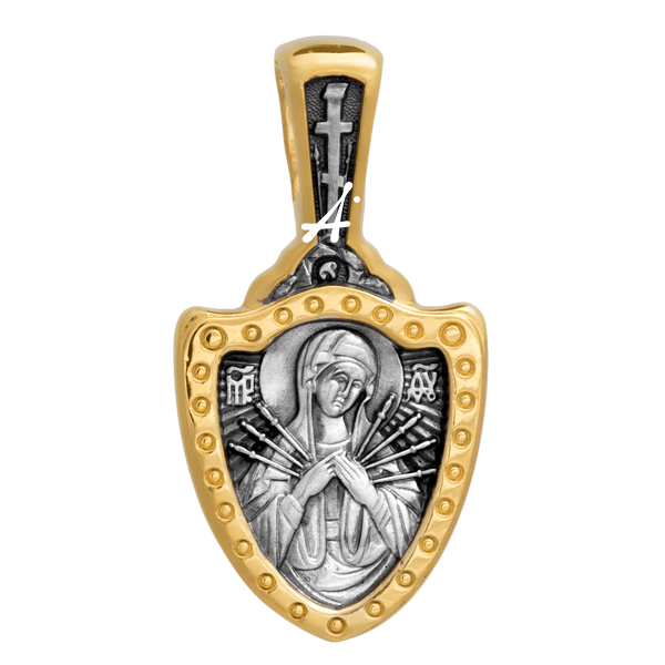 На иконах Божией Матери «Семистрельная» Пресвятая Богородица символически изображается пронзенной семью стрелами. Когда Тело Христа, распинаемого на кресте, пронзили гвоздями и копьем, душу Его Пречистой Матери поразило «оружие» печали и сердечной боли. По учению Православной Церкви, Господь был распят не только за прошлые грехи людей. Каждый день Иисус Христос вновь мистически распинается на Литургии за новые грехи ныне живущих. Поэтому семь стрел символически означают также семь смертных грехов человеческих, приносящих Богородице новые скорби.