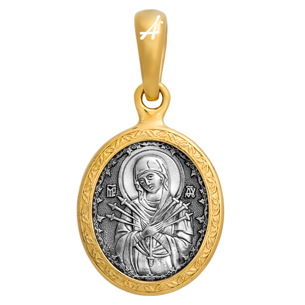 На образке с иконой Божией Матери «Семистрельная» Пресвятая Богородица символически изображена пронзенной семью стрелами. Это образ скорби Матери, увидевшей страдания Своего Сына. Подобно тому, как Тело Христа пронзили гвоздями и копием, так и душу Пречистой Его Матери поразило «оружие» печали и сердечной боли. По учению Православной Церкви Господь был распят за грехи людей, и каждый день вновь распинается на Литургии за новые грехи ныне живущих. Поэтому семь стрел символически означают также семь смертных грехов человеческих, приносящих Богородице новые скорби.