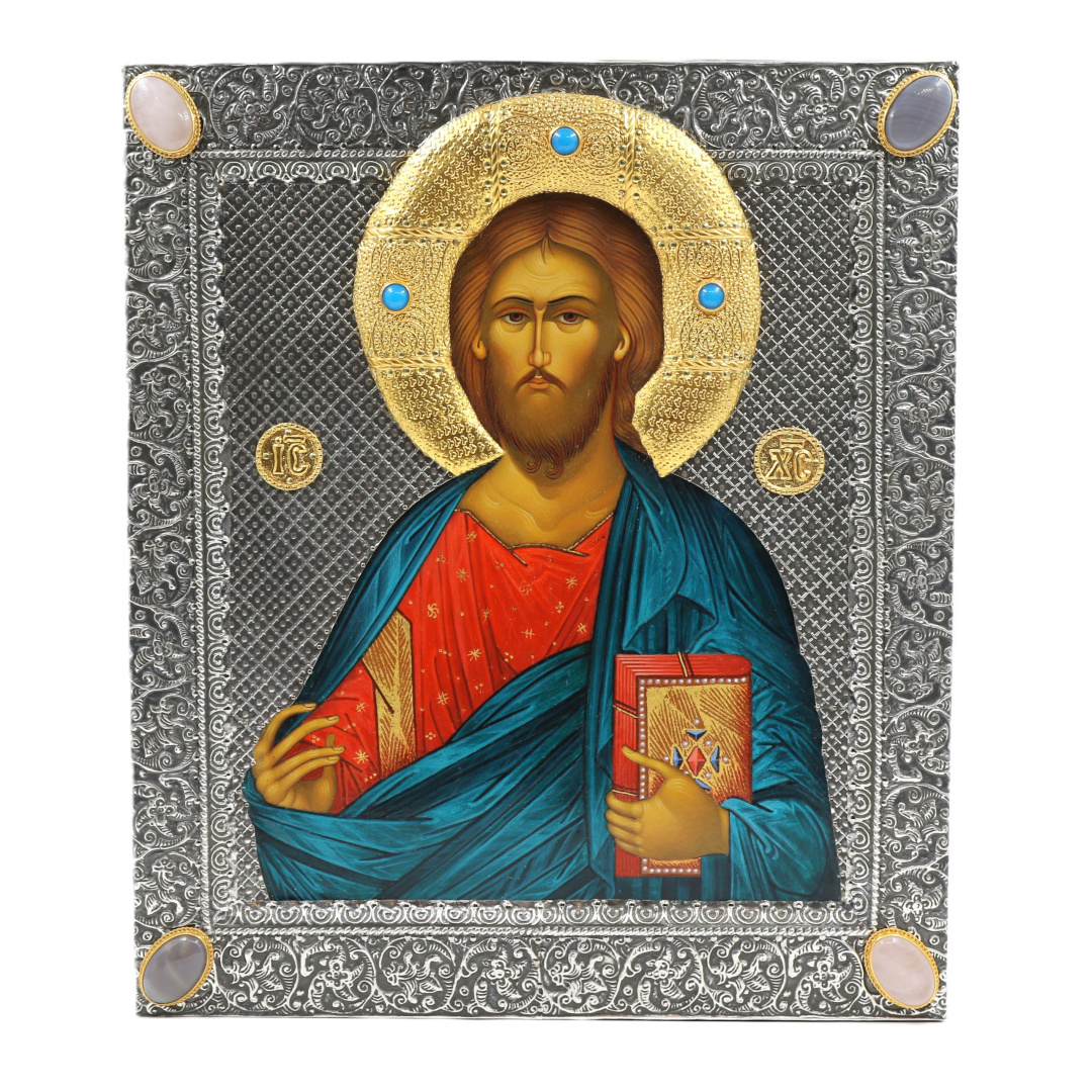 Спаситель изображен в момент благословения и с раскрытым Евангелием — символом Божественного Учения и грядущего Суда. Лик Христа, исполненный сочетания кротости и вседержительной силы, написан в лучших традициях древнерусской иконописи.