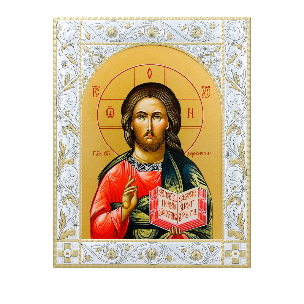 Размер иконы 140*180 мм. Рамка выполнена из сублимационного алюминия, покрытого посеребрёнными красками