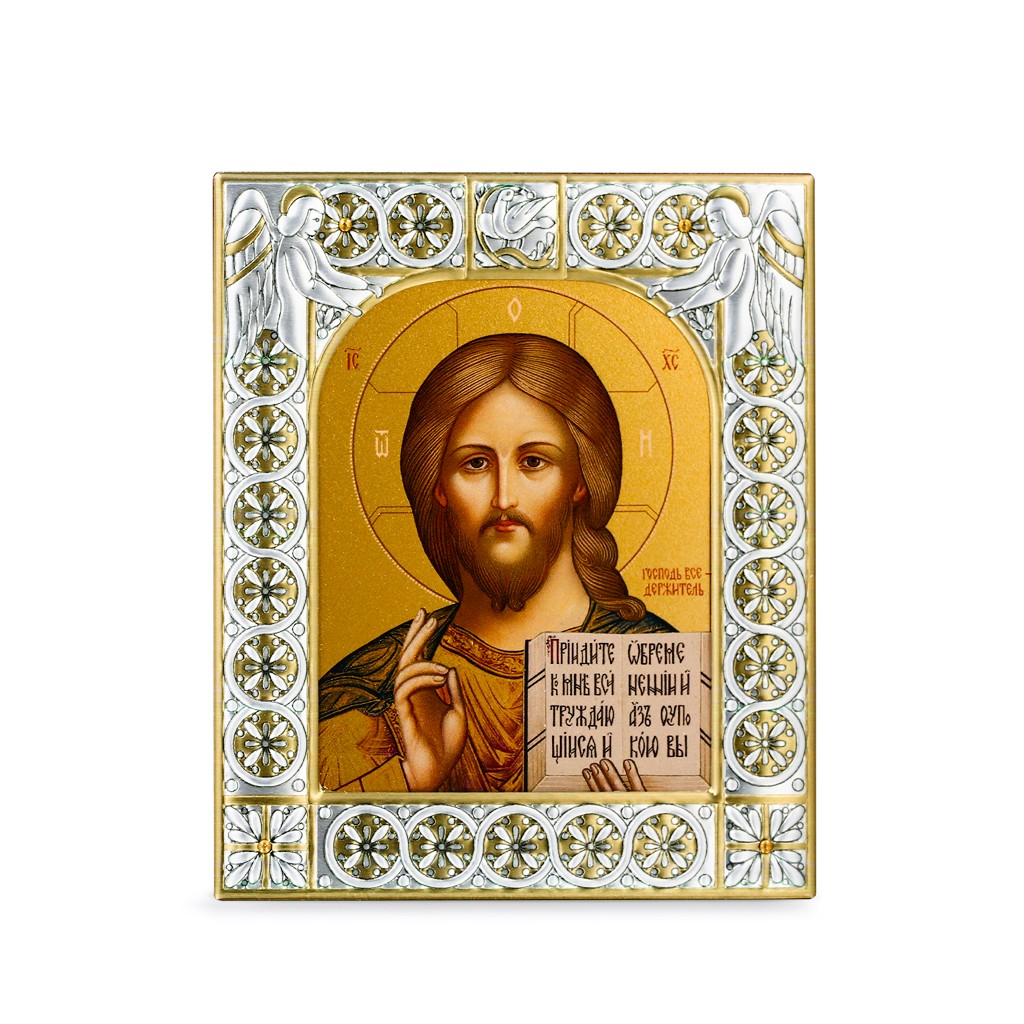 Размер иконы 88*104 мм. Рамка выполнена из сублимационного алюминия, покрытого посеребрёнными красками