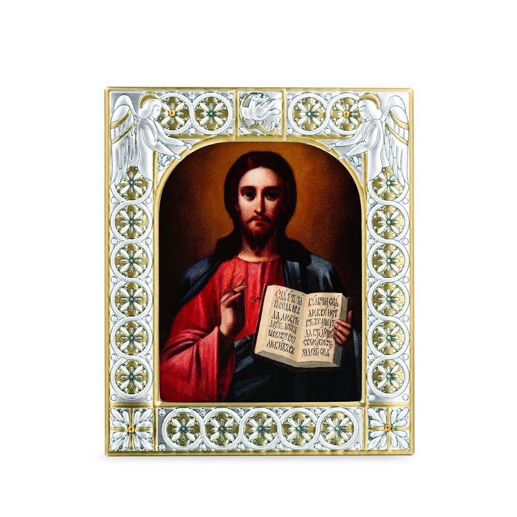 Размер иконы 88*104 мм. Рамка выполнена из сублимационного алюминия, покрытого посеребрёнными красками