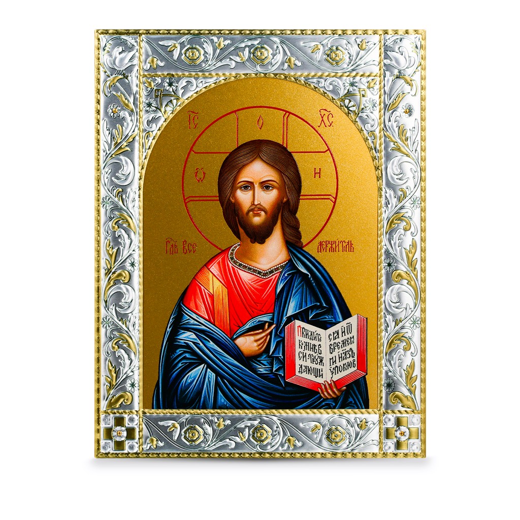 Размер иконы 140*180 мм. Рамка выполнена из сублимационного алюминия, покрытого посеребрёнными красками