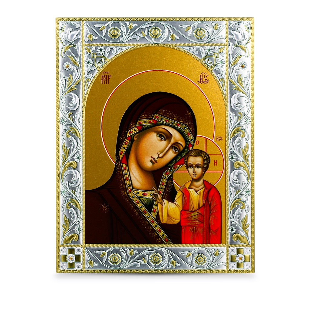 Размер иконы 140*180 мм. Рамка выполнена из сублимационного алюминия, покрытого посеребрёнными красками
