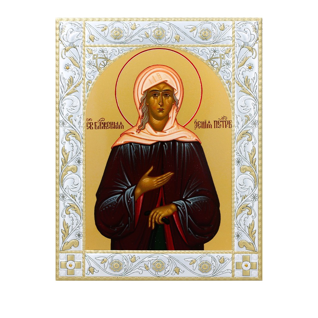 Размер иконы 140*180 мм. Рамка выполнена из сублимационного алюминия, покрытого посеребрёнными красками