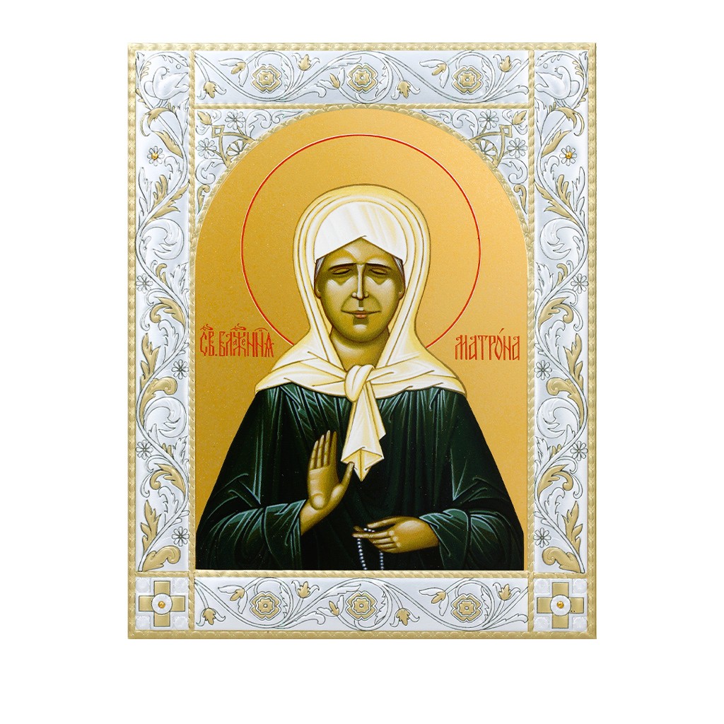 Размер иконы 140*180 мм. Рамка выполнена из сублимационного алюминия, покрытого посеребрёнными красками