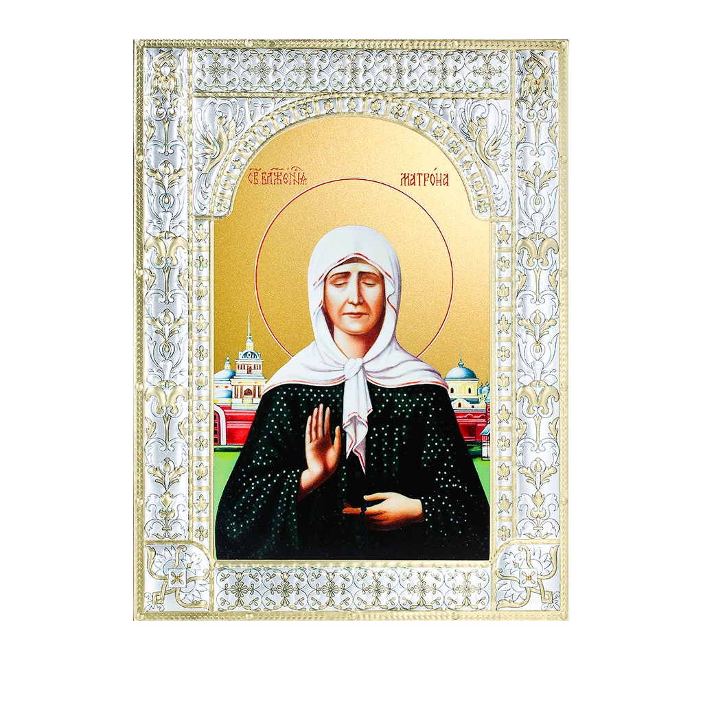 Размер иконы 180*240 мм. Рамка выполнена из сублимационного алюминия, покрытого посеребрёнными красками
