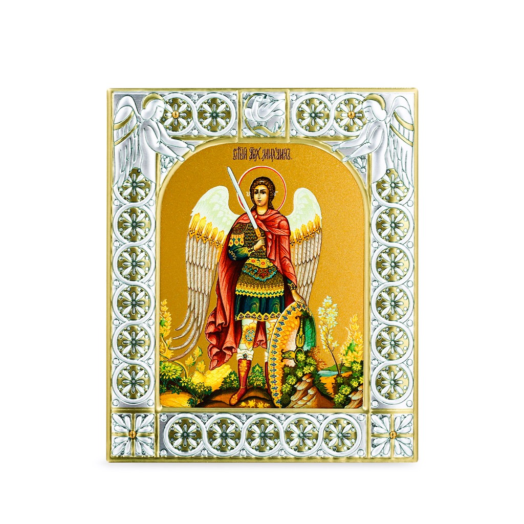 Размер иконы 88*104 мм. Рамка выполнена из сублимационного алюминия, покрытого посеребрёнными красками