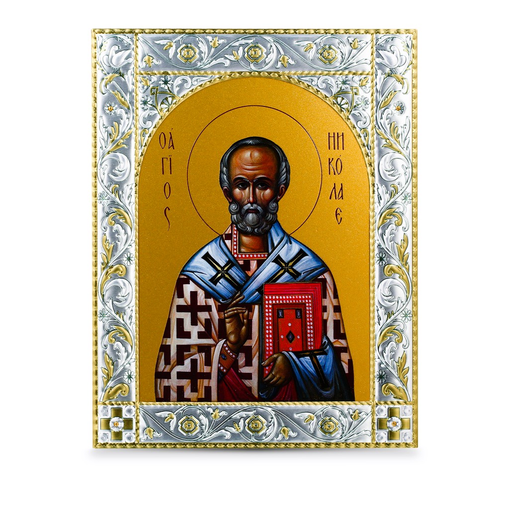 Размер иконы 140*180 мм. Рамка выполнена из сублимационного алюминия, покрытого посеребрёнными красками
