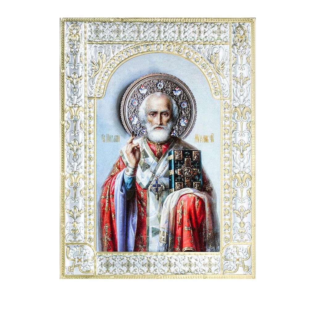 Размер иконы 180*240 мм. Рамка выполнена из сублимационного алюминия, покрытого посеребрёнными красками