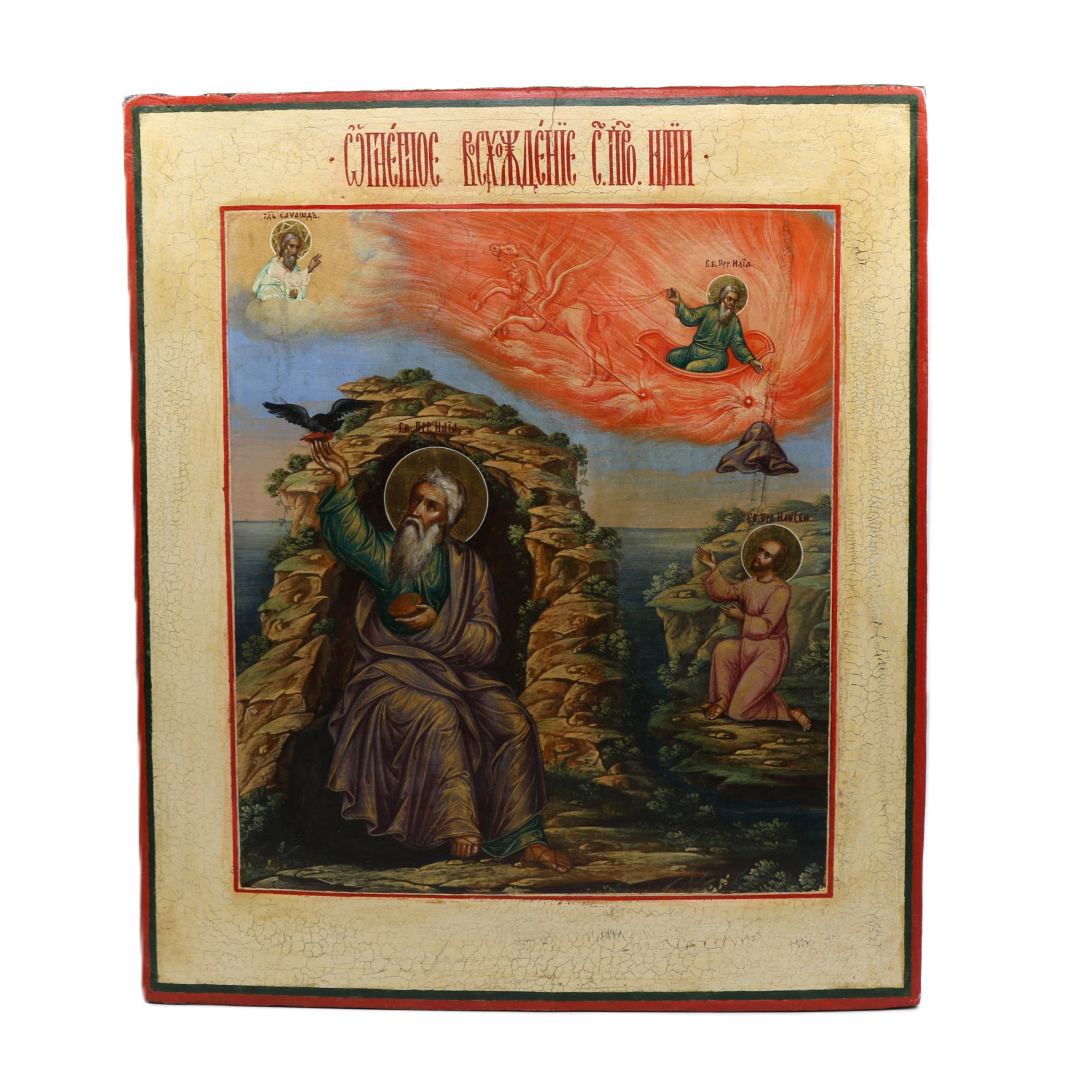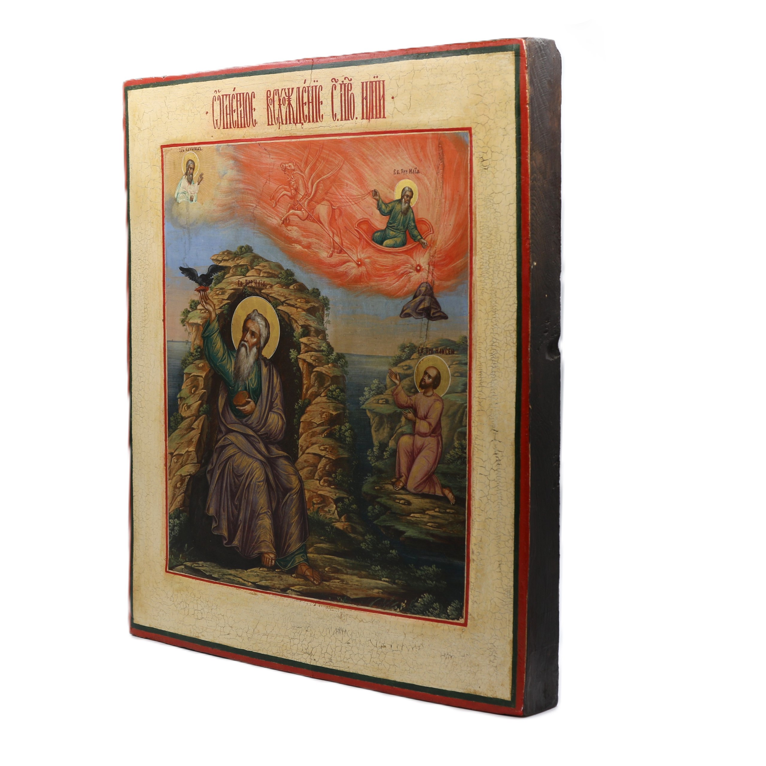Икона Огненное восхождение пророка Илии, конец 19 века, иконопись Мстёрская