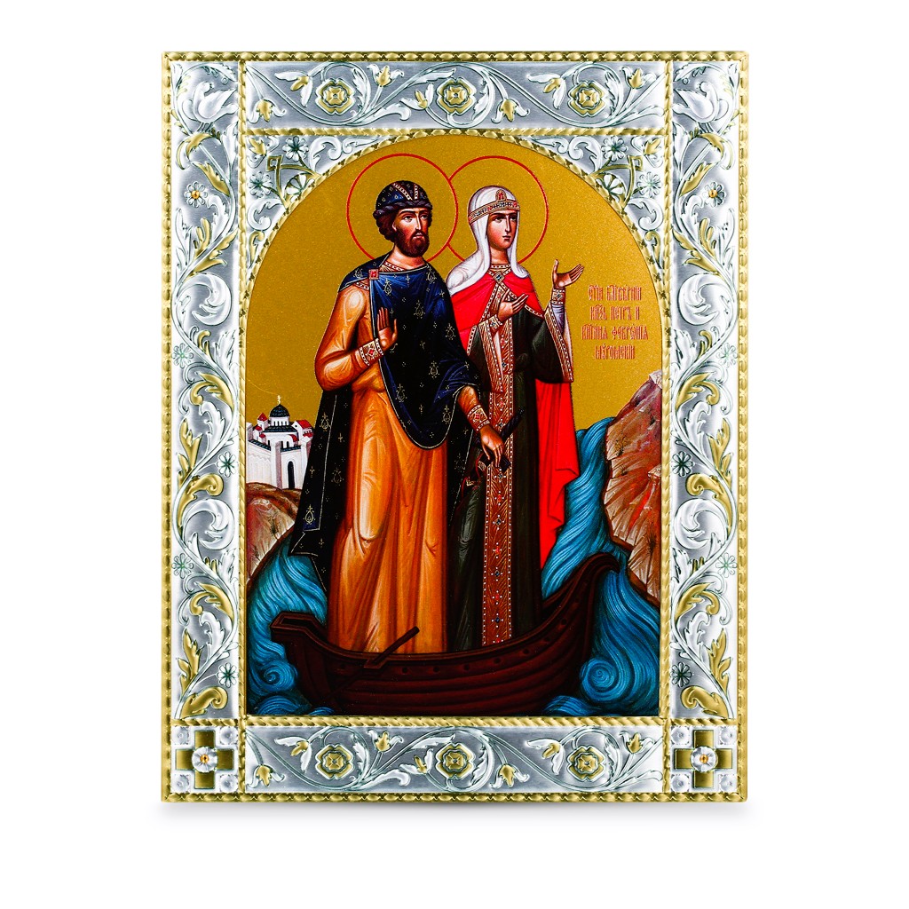 Размер иконы 140*180 мм. Рамка выполнена из сублимационного алюминия, покрытого посеребрёнными красками