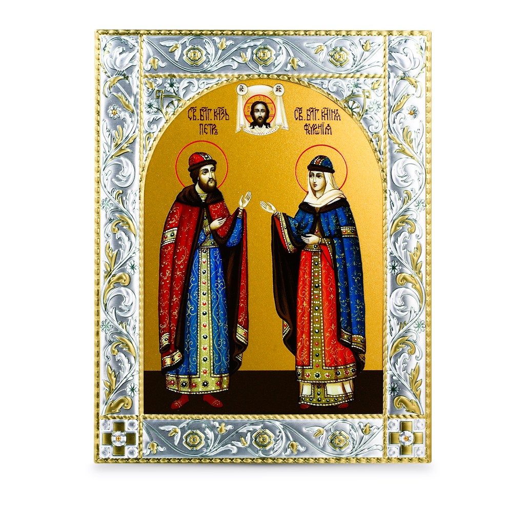 Размер иконы 140*180 мм. Рамка выполнена из сублимационного алюминия, покрытого посеребрёнными красками