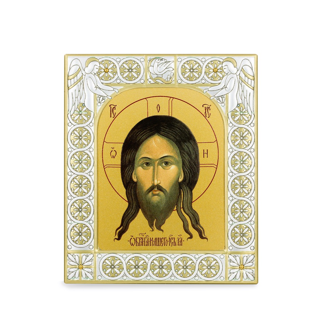 Размер иконы 88*104 мм. Рамка выполнена из сублимационного алюминия, покрытого посеребрёнными красками