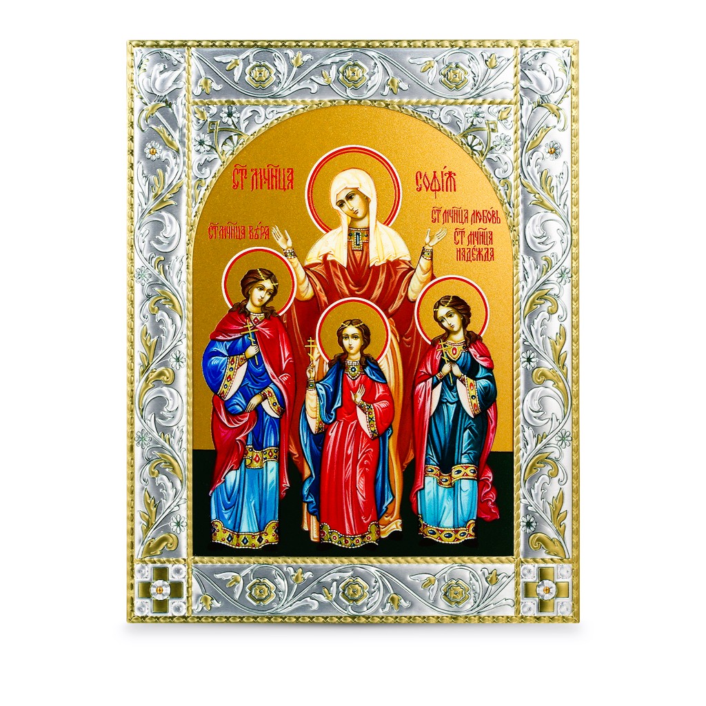 Размер иконы 140*180 мм. Рамка выполнена из сублимационного алюминия, покрытого посеребрёнными красками