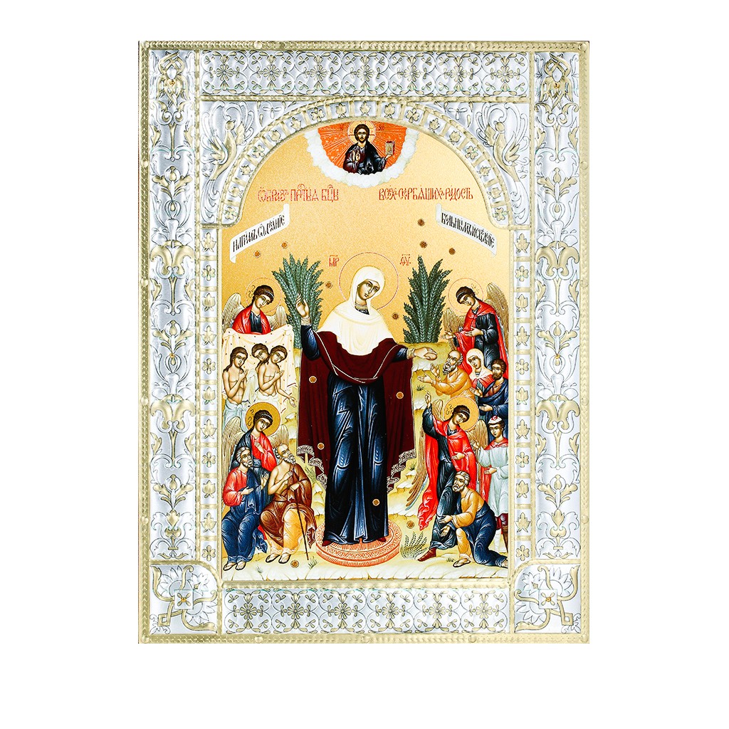 Размер иконы 180*240 мм. Рамка выполнена из сублимационного алюминия, покрытого посеребрёнными красками