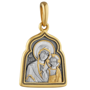 Иконка киотчатой формы представляет собой миниатюрное рельефное изображение великой всенародной святыни Казанской иконы Божией Матери.