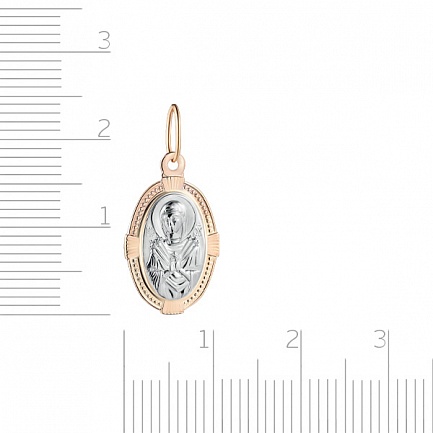 Подвеска из красного золота с изображением Семистрельной Иконы Божией Матери. Лик выполнен из белого золота. Сакральный смысл образа заключается в количестве мечей или стрел, с которыми изображается дева Мария. Существует две основные трактовки. Первая говорит о том, что количество оружия можно сопоставить с числом смертных грехов человеческих. Согласно другой трактовке, семь — это сакральный символ. С древних времен в Церкви существует понятие о семи главных добродетелях, грехах и таинствах. Эта цифра означает полноту, законченность и совершенство. Семь стрел или мечей символизируют страдания Христа во время Страстных дней, которые приняла также и Богоматерь. Дата празднования — 26 августа (по старому стилю — 13 августа). На оборотной стороне имеется оберегающая надпись "Спаси и сохрани".<br><p><strong>Состав</strong>: Золото Au 585</p>