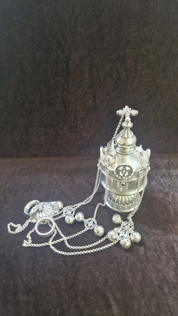 Серебро 960. Чернение, гравировка. Украшено вставками из граната (6 шт)