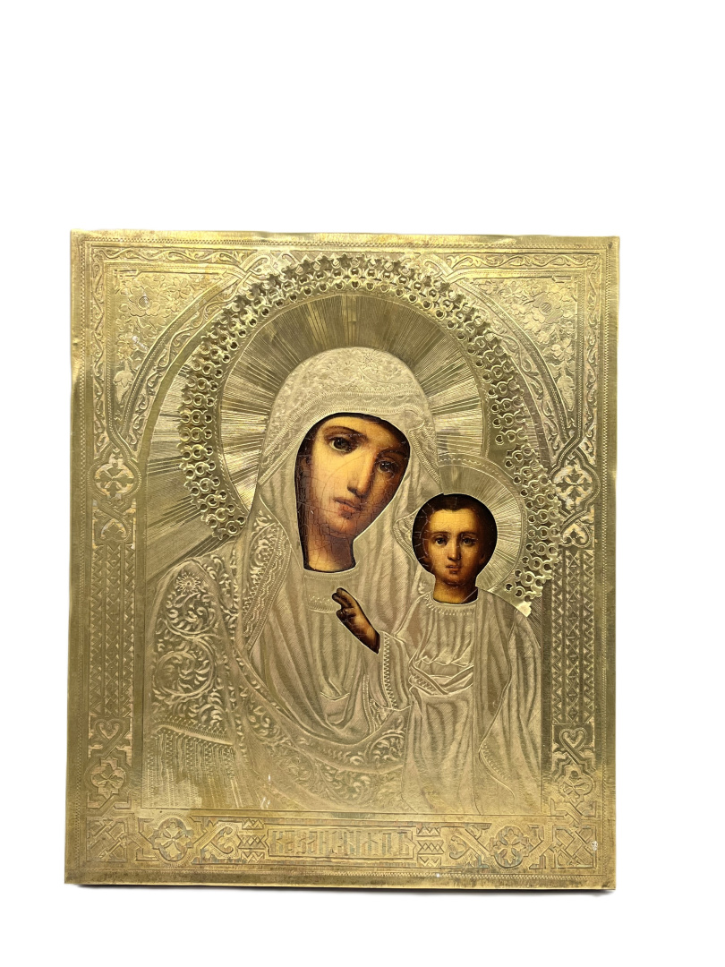 19 век. Размер иконы 22*26 см. Липа. Латунный оклад